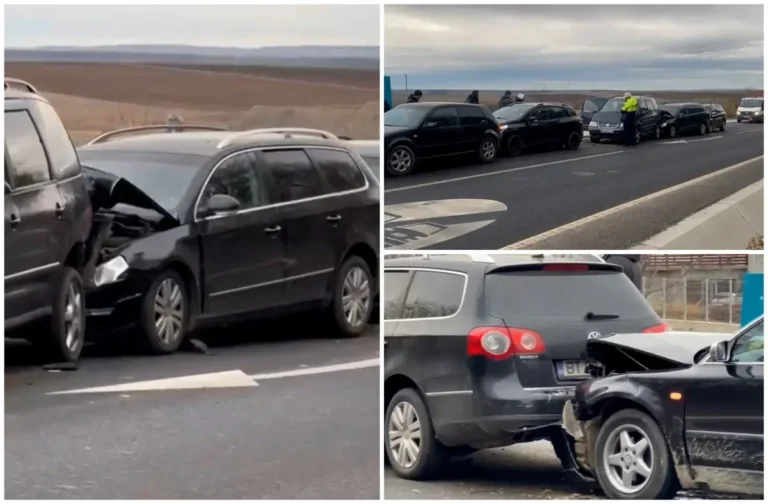 Carambol cu cinci autoturisme, la intrarea în Botoşani. În urma accidentului, un copil a fost rănit. Potrivit martorilor, din cauza unei maşini oprite pe drum, trei şoferi au fost obligaţi să oprească pe rând, unul în spatele celuilalt.