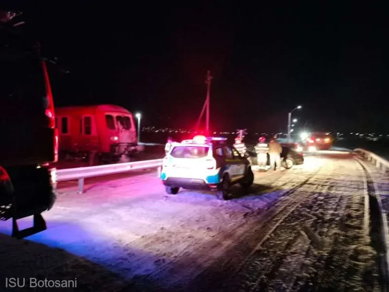 Potrivit acestora, o maşină, condusă de un bărbat, a fost lovită de trenul Iaşi -Truşeşti la o trecere la nivel cu calea ferată fără barieră, în apropierea haltei Zlătunoaia.