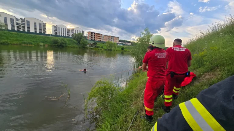 Salvarea a venit în ultima clipă pentru bărbatul de 51 de ani, care, la limita puterilor, a fost adus la mal datorită intervenției rapide a pompierilor.