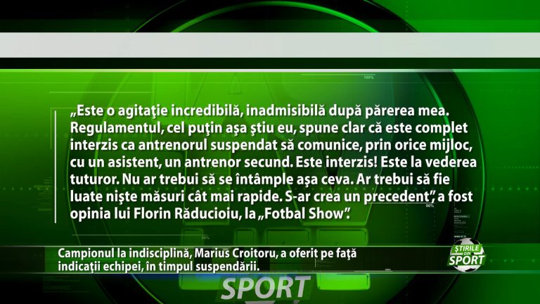 S-a intrecut masura! In ciuda suspendarii pe care a primit-o in prima etapa a actualului sezon, Marius Croitoru a oferit indicatii in vazul lumii, in timpul meciului contra FCSB. Cine a fost mesagerul? Fostul jurnalist si actual team manager al celor de la FCU Craiova 1948, Eduard Zelghin. Gestul celor doi a indignat suflarea fotbalistica, iar primul care a reactionat a fost Florin Raducioiu. https://youtu.be/uvlVbuJdN6c