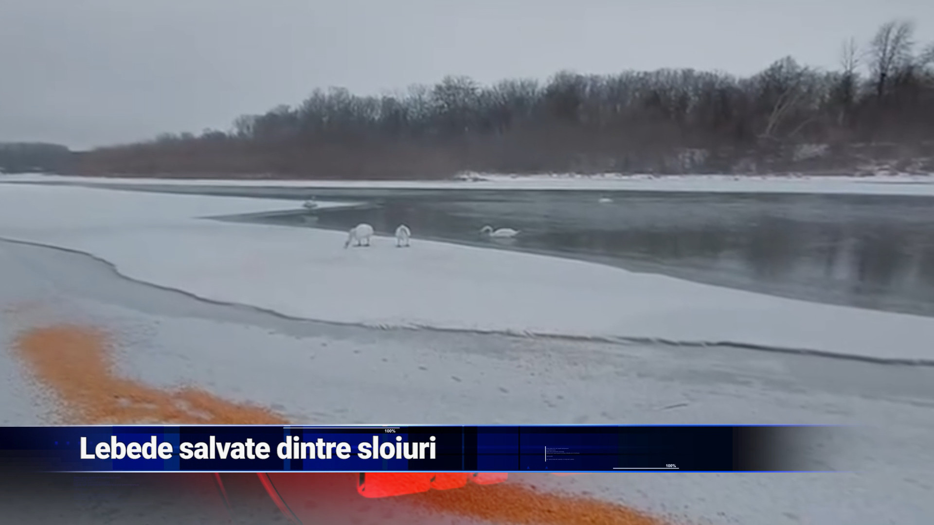 Lecţie de umanitate pe Prut. O familie de lebede care îşi duce traiul pe maulruile rualui a fost în pericol de moarte din cauza gerului. Însă, doi medici veterinari le-au adus furaje concentrate şi cereale, singurele capabile sã le ofere aportul energetic necesar în condiţii de temperaturi extreme.