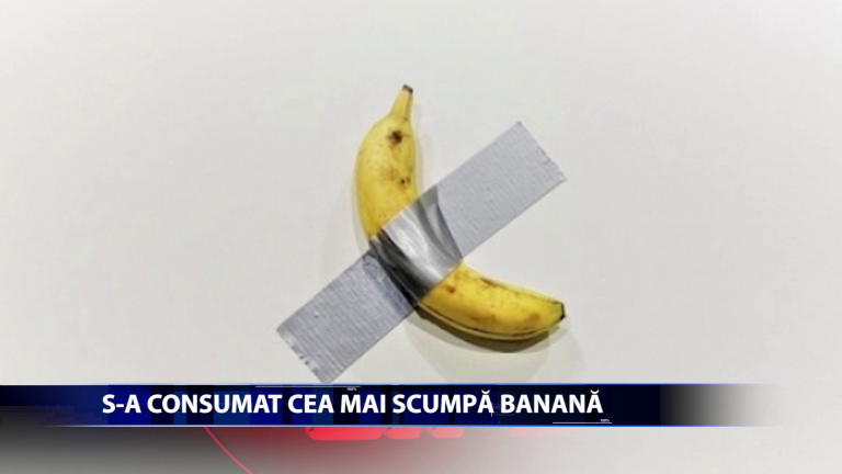 S-a consumat cea mai scumpa banana! Vizitatorii unei expozitii inedite au surprins momentul in care o banana vanduta cu 120.000 de dolari a fost mancata de un artist de performance. Imaginea lucrararii „Comedian”, semnata de Maurizio Cattelan, a facut inconjurul lumii in prima saptamana a lunii decembrie. https://youtu.be/mdFuea68I4o