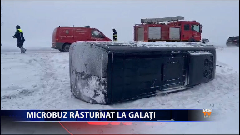 A fost activat Planul roșu de intervenție în Galați, după ce un microbuz în care erau 17 călători s-a răsturnat. Șoferul a pierdut controlul volanului din cauza zăpezii și a vântului puternic, iar microbuzul a ajuns într-un șanț. O femeie în vârstă de 55 de ani, care prezenta dureri abdominale, a fost preluată de medicii de la ambulanță. Restul pasagerilor nu au fost răniți, fiind transportați la destinație cu un alt microbuz. Vă avertizăm, urmează imagini și detalii cu impact emoțional.