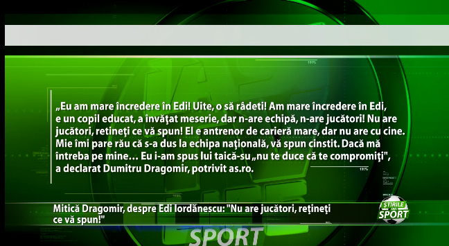 Mitica Dragomir, reactie dura la adresa jucatorilor Nationalei. Fostul sef al Ligii Profesioniste de fotbal il apara pe Edi Iordanescu, insa ii face praf pe elevii acestuia. https://youtu.be/inGcRC9vvJE
