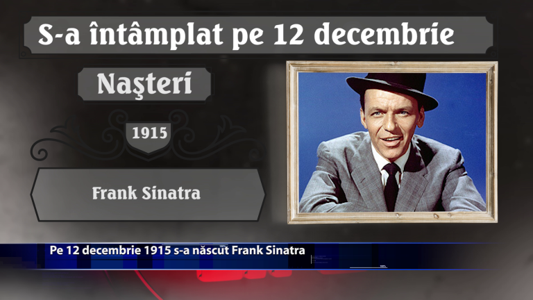 Pe 12 decembrie 1915 s-a nascut Frank Sinatra. Tot pe 12 decembrie, dar in anul 1983 a murit Amza Pellea. Ce alte evenimente deosebite au mai avut loc de-a lungul timpului pe 12 decembrie, aflam din rubrica … S-A INTAMPLAT PE … https://youtu.be/Hjt7CKB1eeY