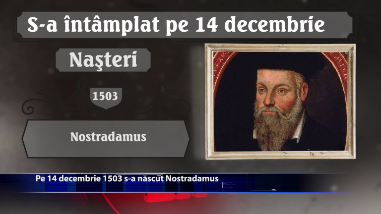 Pe 14 decembrie 1503 s-a nascut Nostradamus. Tot pe 14 decembrie, dar in anul 1799 a murit George Washington, primul presedinte al Statelor Unite ale Americii. Ce alte evenimente deosebite au mai avut loc de-a lungul timpului pe 14 decembrie, aflam din rubrica … S-A INTAMPLAT PE … https://youtu.be/nA_fqil9rVE