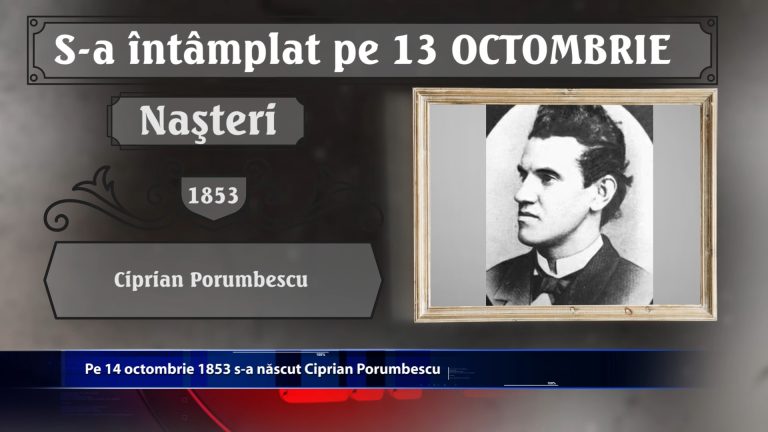 Pe 14 octombrie 1853 s-a nascut Ciprian Porumbescu. Tot e 14 octombrie, dar in anul 1964, doctor Martin Luther King devine cel mai tanar laureat al Premiului Nobel pentru Pace. Ce alte evenimente au avut loc de-a lungu timpului pe 14 octombrie, aflam din rubrica … S-A INTAMPLAT PE … https://youtu.be/as7Cw6gsD2w