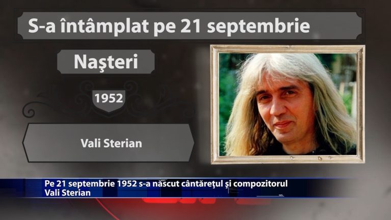 Pe 21 septembrie 1952 s-a nascut cantaretul si comozitorul Vali Sterian. Tot pe 21 septembrie, dar in anul 1983, este folosit primul telefon mobil. ce alte evenimente desoebite au avut loc de-a lungul timpului pe 21 septembrie, aflam din rubrica … S-A INTAMPLAT PE … https://youtu.be/EqwhzdPZIko