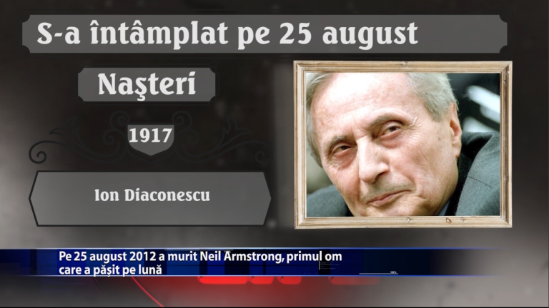 Pe 25 august 2012 a murit Neil Armstrong, primul om care a pășit pe Lună. Tot pe 25 august, dar în anul 1991 are loc debutul pilotului de Formula 1 Michael Schumacher, în Marele Premiu al Belgiei. Ce alte evenimente deosebite au avut loc de-a lungul timpului pe 25 august, aflăm din rubrica … S-A INTAMPLAT PE https://youtu.be/J_qsa9kfzEM