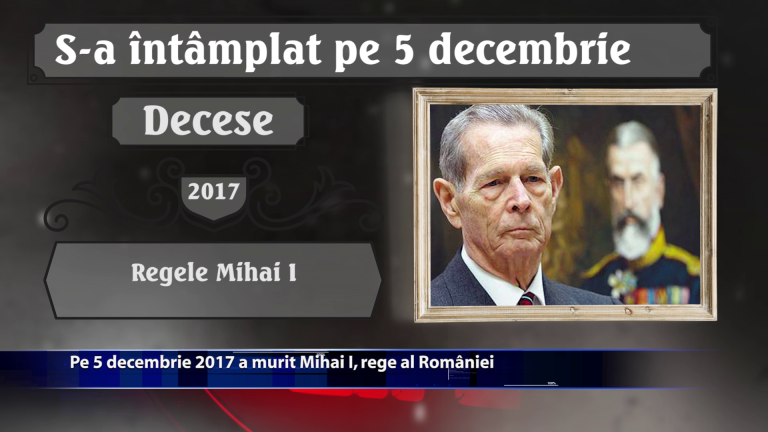 Pe 5 decembrie 2017 a murit Regele Mihai I al Romaniei. Tot pe 5 decembrie, dar in anul 1901 regizorul, producatorul, animatorul si scenaristul american s-a nascut Walt Disney. Ce alte evenimente deosebite au avut loc de-a lungul timpului pe 5 decembrie, aflam din rubrica … S-A INTAMPLAT PE … https://youtu.be/oM3PbQX66VY