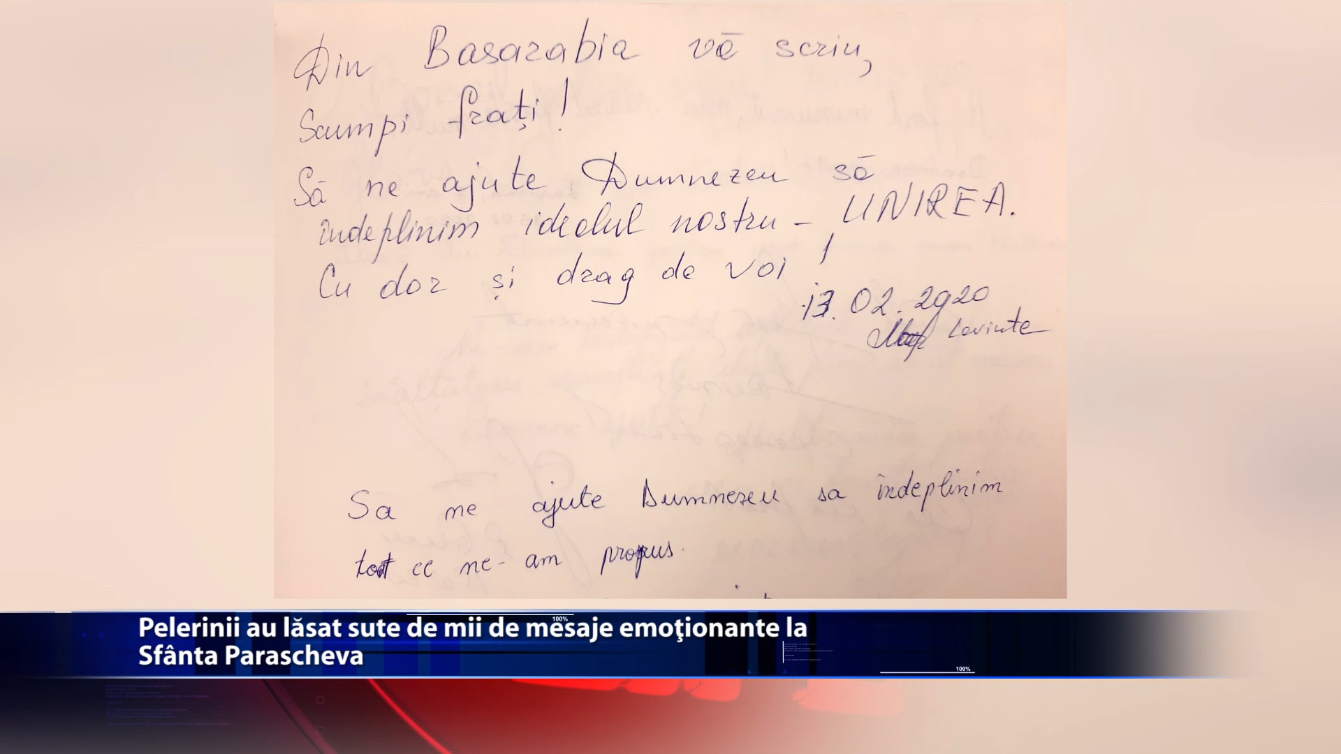 Sute de mii de oameni au venit la lasi pentru a se inchina la racla Cuvioasei Parascheva. Au stat cu orele la rand pentru a atinge mostele, s-au rugat si au plans pentru minunile facute de Sfanta Parascheva. Cu emotii si bucurie in suflet, credinciosii au lasat sute de mii de mesaje de multumire. Reprezentantii Catedralei Mitropolitane au adunat pana acum trei volume cu mesaje emotionate ale celor care au ajuns la Iasi, la Sfanta Parascheva. https://youtu.be/karXxXHPZXE