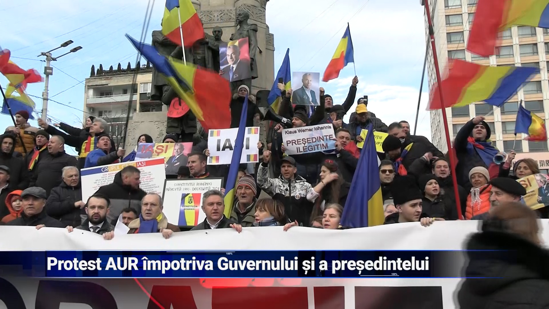 Sâmbătă, la Iași, peste 500 de persoane, membri și simpatizanți ai Alianței pentru Unirea Românilor s-au adunat în Piața Unirii pentru a protesta împotriva actualei conduceri politice din România. Ei au cerut reluarea turului doi al alegerilor prezidențiale și demisia șefului statului.