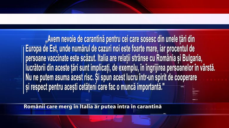 Ar putea sta in carantina! Cresterea numarul de cazuri de Coronavirus si apropierea sarbatorilor au ridicat pragul de alarma in Italia. Astfel, consilierul pentru sanatate al regiunii Lazio sustine varianta ca toti cei care sosesc in Italia din statele est-europene puternic afectate de catre pandemie sa stea in carantina. Romania si Bulgaria se afla in topul listei. https://youtu.be/TI_dgDfYfFU