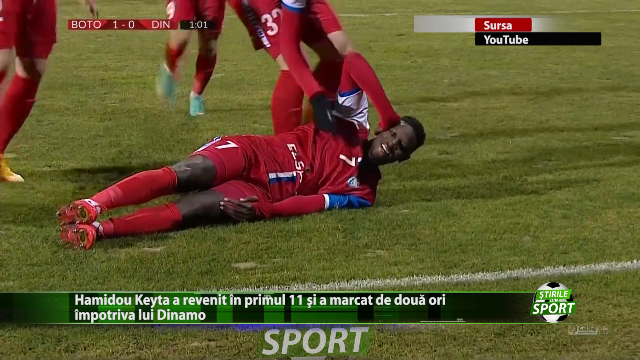S-a intors „fiul risipitor” al celor de la FC Botosani! Golgheterul Hamidou Keyta a revenit in primul 11 al lui Marius Croitoru si nu oricum, ci chiar cu o dubla in fata celor de la Dinamo Bucuresti. Nu va pleca in aceasta iarna de pe „Municipal” si este pregatit sa dea tot ceea ce are mai bun pentru actuala sa echipa. Hamidou Keyta i-a promis antrenorului sau ca va marca de doua ori împotriva „cainilor” si s-a si tinut de cuvânt. In prezent atacantul este in continuare al treilea in clasamentul marcatorilor din Liga I. https://youtu.be/0_tmm23EIUE