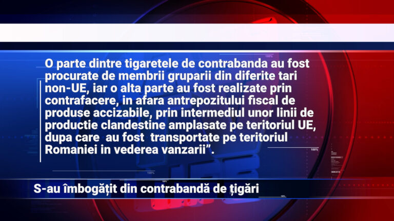 Peste 1,5 milioane de pachete de țigări de contrabandă au fost ridicate în urma unor ample percheziții în 10 județe și în București. Printre județele vizate de oamenii legii se numără și trei din Moldova – Iași, Neamț și Suceava. Au fost arestate preventiv 6 persoane, trei dintre ele cu dublă cetățenie – română și moldovenească.