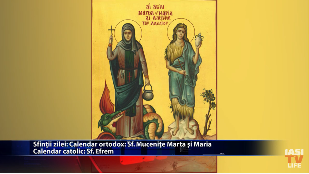 Pe 9 iunie, in bisericile ortodoxe sunt pomenite Sfintele Mucenite Marta si Maria. Credinciosii romano-catolici il venereaza pe 9 iunie pe Sfantul Efrem. https://youtu.be/UtPI-W33cqs