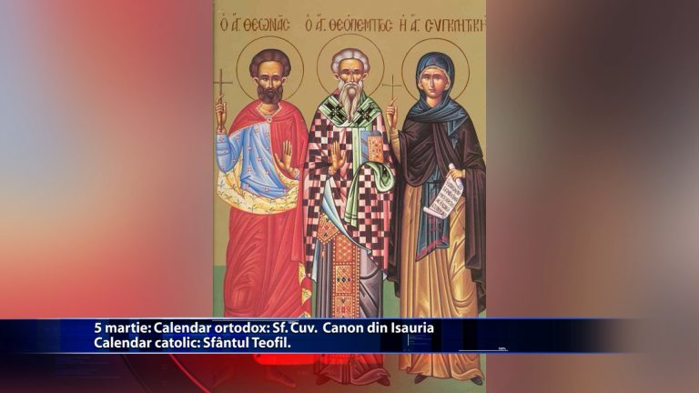 Pe 5 martie, in biserica ortodoxa este pomenit Sfantul Cuvios Mucenic Conon din Isauria. In aceeasi zi, romano – catolicii il venereaza pe Sfantul Teofil. https://youtu.be/gWTW8rbvA4Y