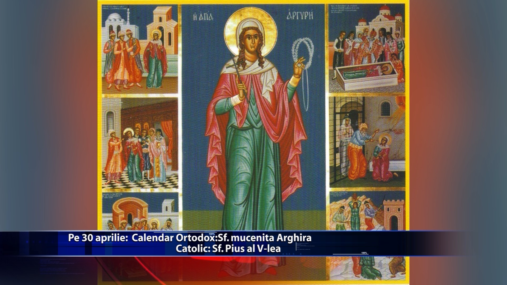 In biserica ortodoxa, pe 30 aprilie este pomenita Sfanta mucenita Srghira. In biserica romano-catolica, in aceeasi zi este venerat Sfantul Pius al V-lea. https://youtu.be/UKjPJ4Uj4Gg