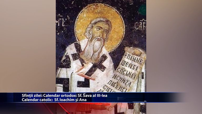 In calendarul ortodox, pe 26 iulie, este pomenit Sfantul Sava al III-lea. Romano-catolicii ii venereaza pe Sfintii Ioachim si Ana, parintii lui Iisus Hristos. https://youtu.be/PrHKk5pSnYU