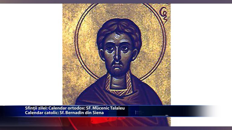 Pe 20 mai, in biserica ortodoxa este praznuit Sfantul Mucenic Talaleu. Pe 20 mai, romano-catolicii il venereaza pe Sfantul Bernardin din Siena. https://youtu.be/JBL68AU9_vo