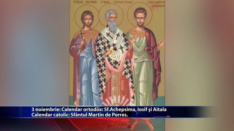 In bisericile ortodoxe, pe 3 noiembrie sunt pomeniti Sfintii mucenici Achepsima, Iosif si Aitala. Romano catolicii il venereaza pe Sfantul Martin de Porres. https://youtu.be/TTs3W2IolIY