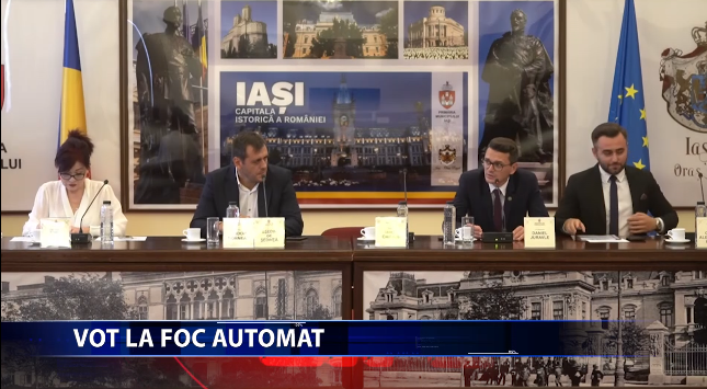 Vot la ,,foc automat”! Intruniti in sedinta extraordinara, consilierii locali au votat trei proiecte de hotarare in doar sase minute. In sala de consiliu au fost prezenti fizic numai noua alesi, cei doi viceprimari si secretarul Consiliului Local, insa ceilalti au participat online. Desi a fost sedinta extraordinara, consilierul USR Iulian Nicolau a incalcat regula si a facut o scurta interpelare. https://youtu.be/qdexSZ9xnPk