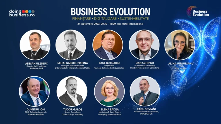Road Show-ul de conferințe „Business Evolution” oganizat de Doingbusiness.ro ajunge pe 27 septembrie 2023 la Iași. Evenimentul este dedicat top managementului companiilor, antreprenorilor și managerilor din departamentele de dezvoltare, IT, financiar, marketing sau vânzări.
