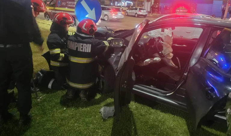 Pompierii ieșeni au intervenit vineri seară la un accident rutier produs în Podu Roș, Iași, unde un autoturism a lovit un stâlp electric.