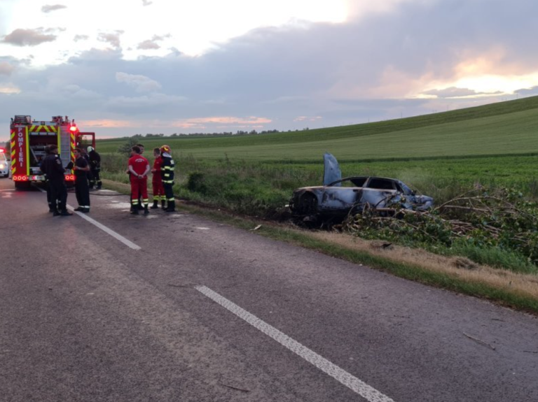 Din primele informaţii, un autoturism a izbit un copac şi două persoane au rămas încarcerate. Maşina a luat foc, iar una dintre victime a fost carbonizată. Vom reveni cu amănunte.