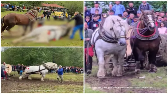 Procurorii au preluat ancheta și vor audia mai multe persoane după ce un cal adus din Slovacia a murit la o competiție de tras bușteni uriași, organizată în Bistrița-Năsăud.