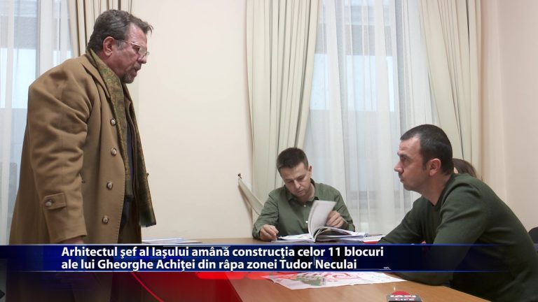 Dezbatere aprinsa pe subiectul autorizatiei de construire a 11 blocuri in rapa din zona Tudor Neculai! Locuitorii din cartierul de case de pe strazile Strugurilor si Tudor Neculai au venit la Primarie pentru a discuta cu arhitectul sef. Au cerut lamuriri despre efectele unei astfel de investitii in zona. Discutia a fost aprinsa, deoarece dezvoltatorul este nemultumit ca procesul tergiverseaza si n-a reusit sa obtina toate avizele. Arhitectul a cerut deja dezvoltatorului sa gaseasca o alta solutie pentru amplasarea blocurilor.