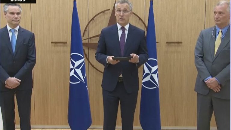 Ambasadorii celor două țări la NATO s-au întâlnit cu secretarul general al NATO, Jens Stoltenberg, pentru a transmite cererile de aderare.