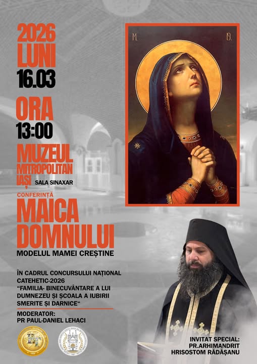 Pe 16 martie, la Muzeul Mitropolitan Iași, a avut loc conferința catehetică „Maica Domnului – modelul mamei creștine”, susținută de Hrisostom Rădășanu, consilier în cadrul Arhiepiscopiei Iașilor. Activitatea, moderată de preotul Paul-Daniel Lehaci, a reunit elevi și profesori implicați în proiect, oferind un prilej de reflecție asupra valorilor familiei și asupra rolului matern în spiritualitatea creștină.