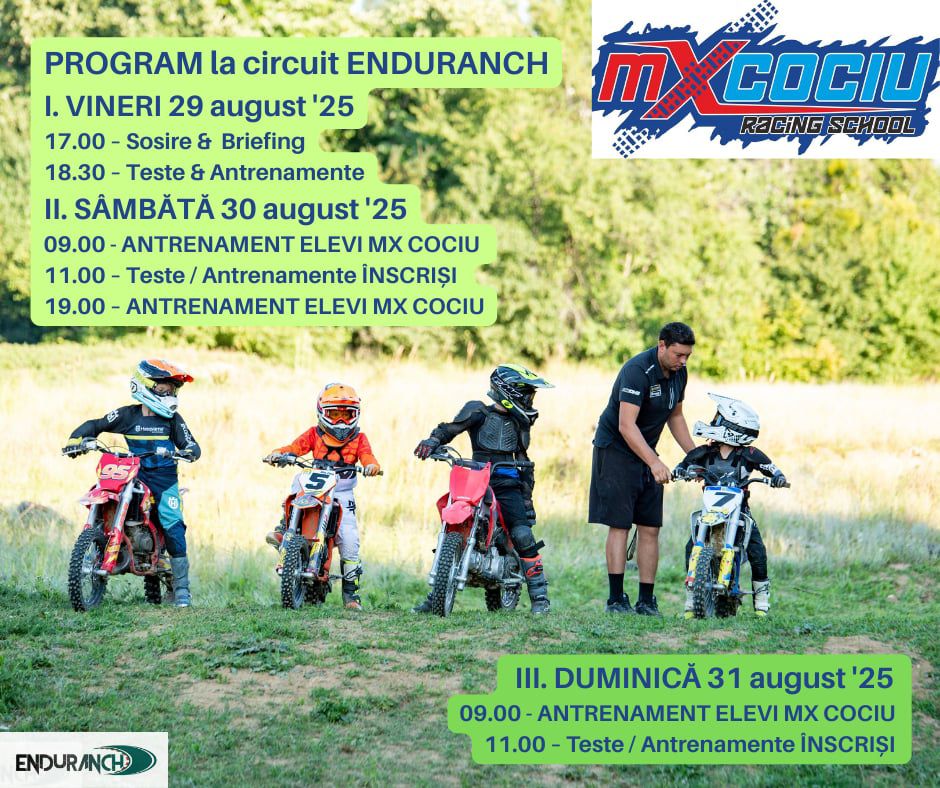 ACS ENDURANCH și Cociu MX School continuă cursurile moto de la IAȘI (motocross și enduro) pentru copii, adolescenți, amatori, profesioniști.