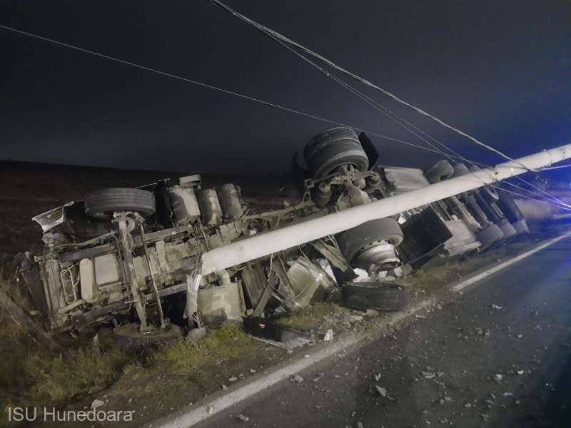 O cisternă încărcată cu 12 tone de carburant s-a răsturnat, în cursul nopţii de duminică spre luni, pe şoseaua care face legătura între municipiile Deva şi Hunedoara, şoferul autovehiculului fiind transportat la spitalul judeţean pentru îngrijiri medicale, a informat Inspectoratul pentru Situaţii de Urgenţă (ISU) Hunedoara.