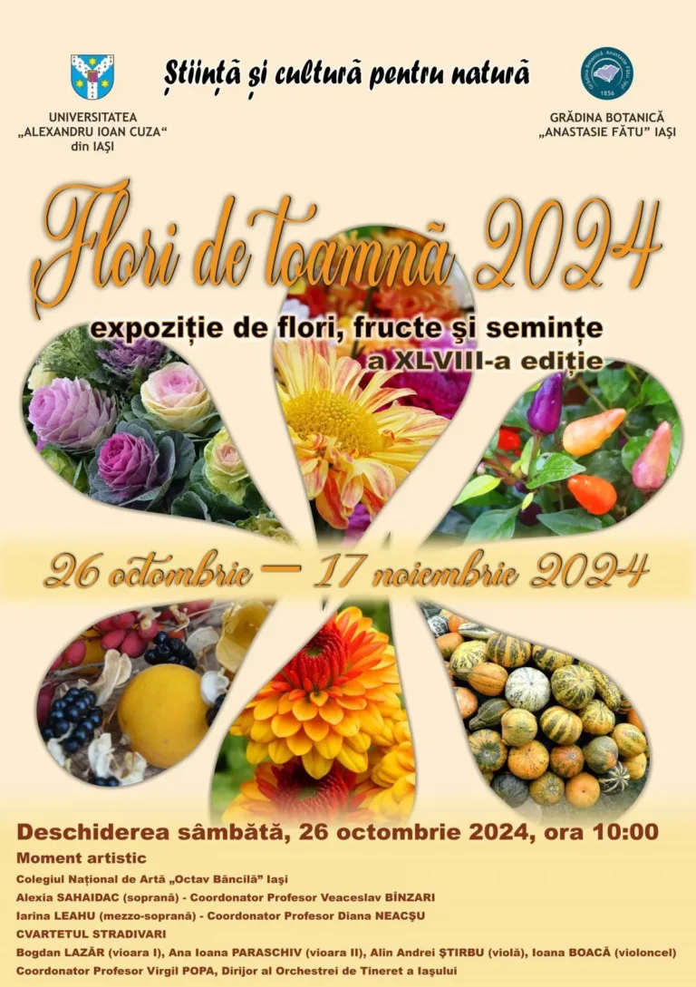 Expoziția „Flori de toamnă” va marca începutul celei de a 48-a ediții în Grădina Botanică „Anastasie Fătu” din Iași, un eveniment deja tradițional.