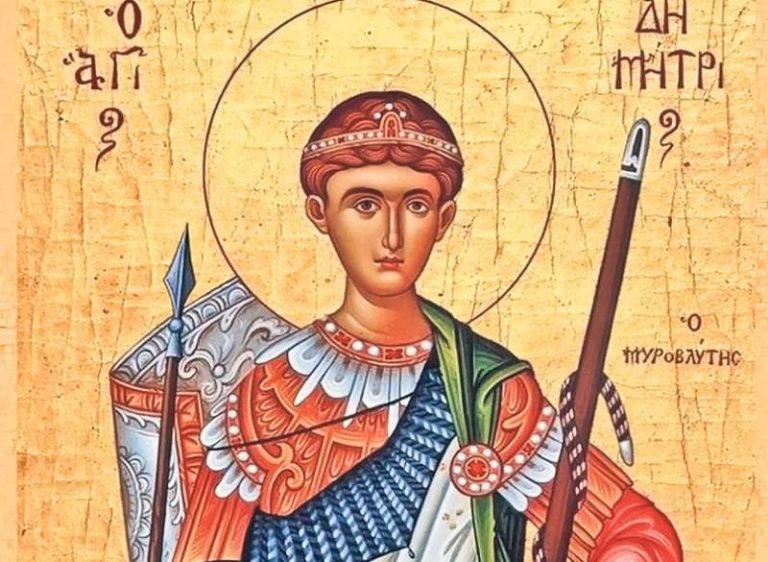 Sfantul Dimitrie a vietuit in timpul domniei imparatilor Diocletian (284-305) si Maximian Galeriu (284-311). A fost botezat in taina, din cauza prigoanelor impotriva crestinilor. Dupa moartea tatalui sau a fost ales dregator al cetatii Tesalonic chiar de catre imparatul Maximian Galeriu. Pentru ca refuza sa aduca jertfa zeilor, marturisind credinta in Hristos, a fost aruncat in temnita. In aceea vreme existau renumitele jocuri in cinstea imparatului, in care gladiatorul Lie (un luptator de origine vandala, adus de prin Africa) ii arunca in sulite pe cei cu care se lupta, indeosebi crestini. Din relatarea vietii Sfantului Dimitrie cel Mare aflam ca un tanar Nestor, ii cere in temnita binecuvantarea Sfantului Dimitrie sa lupte cu Lie. Sfantul Dimitrie il binecuvinteaza si acesta reuseste sa-l biruie pe Lie. Imparatul, afland de binecuvantarea daruita de Sfantul Dimitrie, a poruncit ca el sa fie strapuns cu sulitele, iar lui Nestor sa i se taie capul.