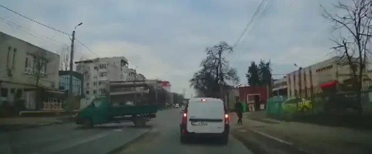 Potrivit imaginilor, pietonul încerca să traverseze pe trecerea de pietoni de pe bulevardul Poitiers, primind prioritate de la autoturismul aflat pe prima banda atunci când șoferul unei autoutilitare care se deplasa cu viteză a frânat atât de brusc, încât autoutilitara s-a rotit, ajungând pe celălalt sens de mers.